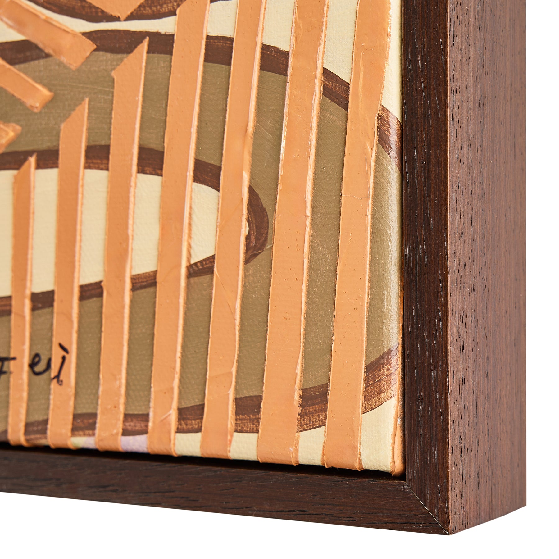 Meandering Pathways by Teng Fei is a meditative exploration of journey and process rendered in oil on canvas. Sinuous lines in warm oranges, browns, and whites intersect and interweave in an intricate composition that celebrates the beauty of the path itself rather than its destination. Framed in rich brown pinewood and designed for horizontal display, this contemplative work brings philosophical depth and refined elegance to any thoughtfully curated space.