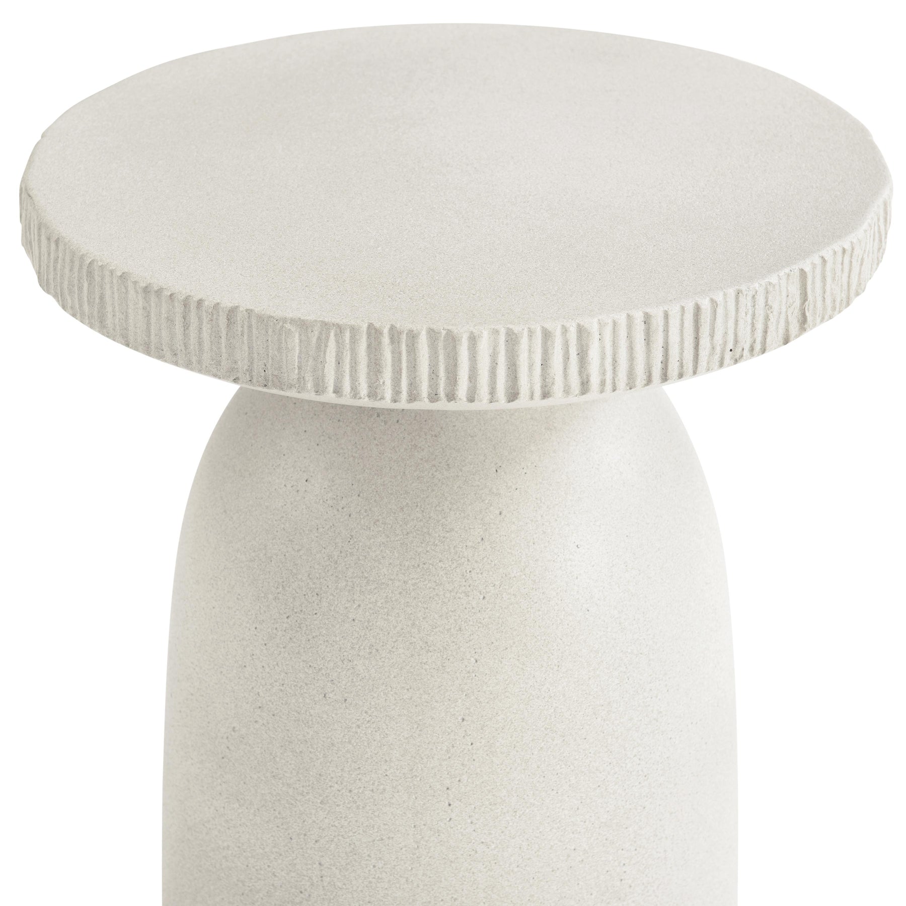 The Avery Side Table is crafted from glass reinforced concrete in the elegant shape of a modern chess piece. Featuring a smooth, monolithic form with a textured band around the top, its Pumice finish adds subtle depth and refinement, making it a sophisticated accent for any contemporary setting.