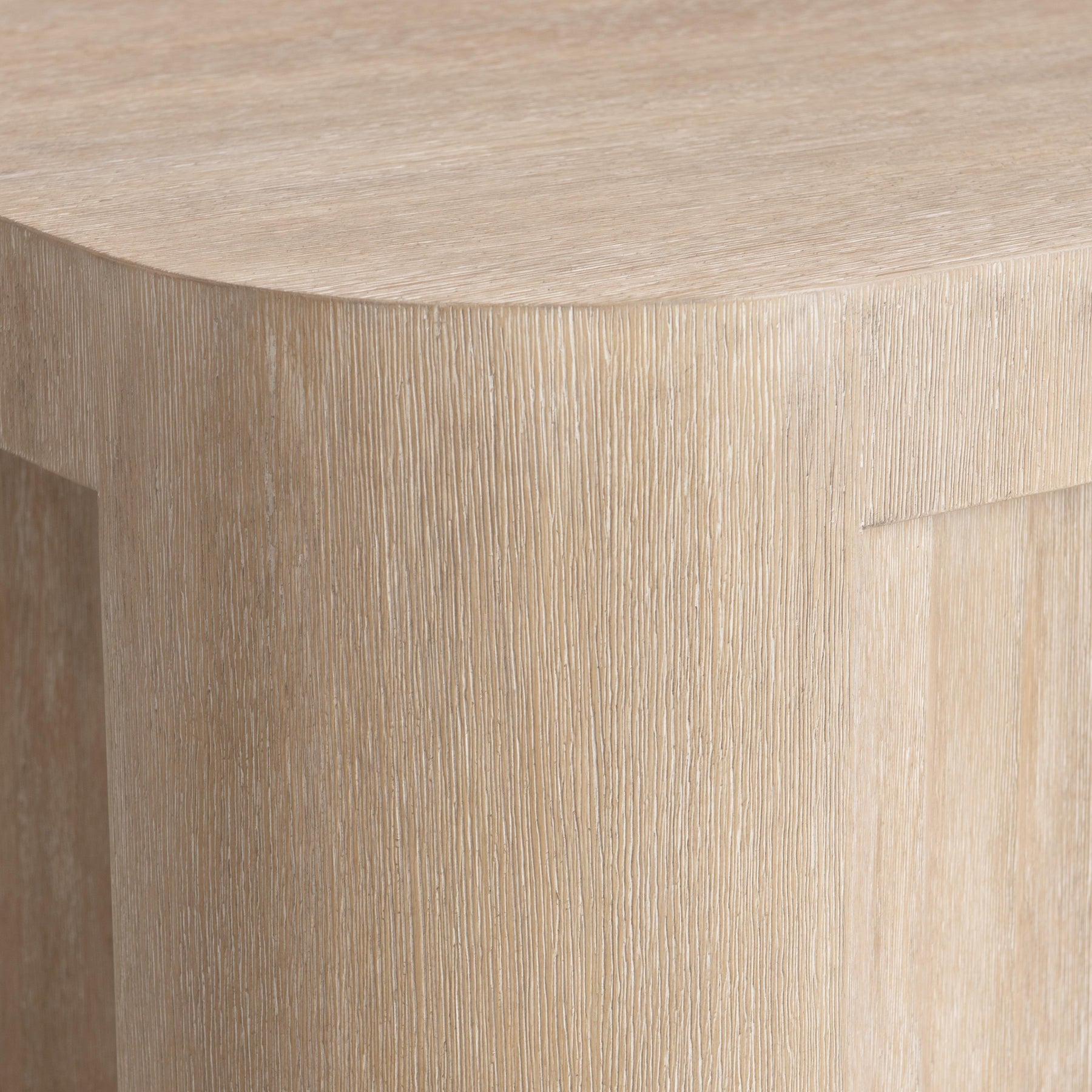The Logan Cocktail Table features elegant subtle fluting along its sides, which gracefully curve inward to form a refined concave silhouette at the base. Its rectangular shape with smoothly rounded corners blends architectural precision with a soft sophisticated design in the beautiful Aria finish, making it a striking centerpiece for any living space.