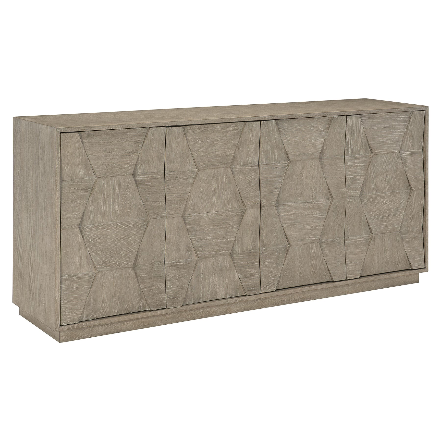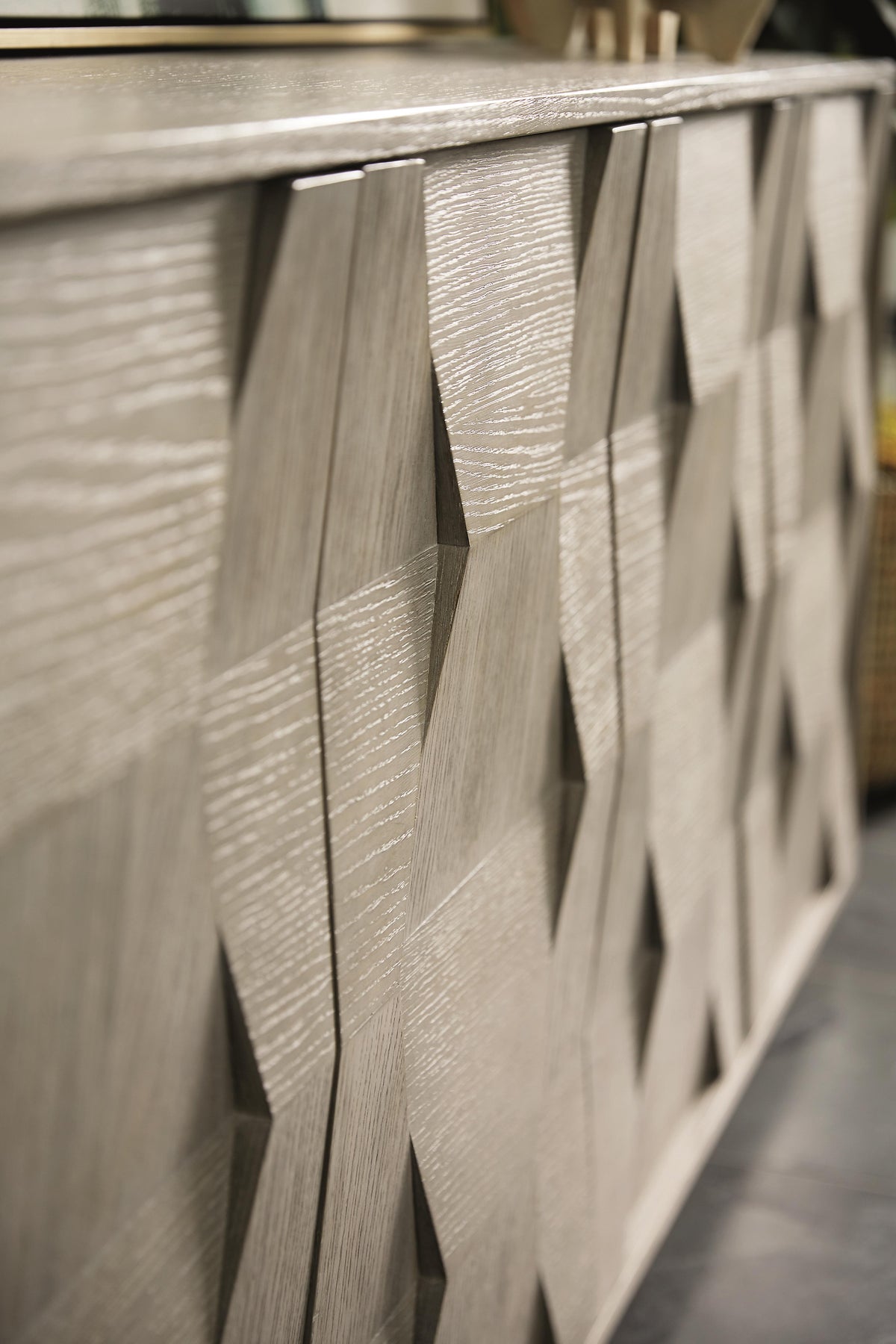 The Lidia Buffet bridges rustic warmth with contemporary restraint. Four doors showcase three-dimensional cerused oak veneers that catch light and shadow, creating subtle visual depth across the facade. Supported by a refined plinth base, this piece balances textural richness with clean proportions—ideal for dining spaces seeking natural character without ornamental excess. A versatile anchor that grounds a room with quiet sophistication.