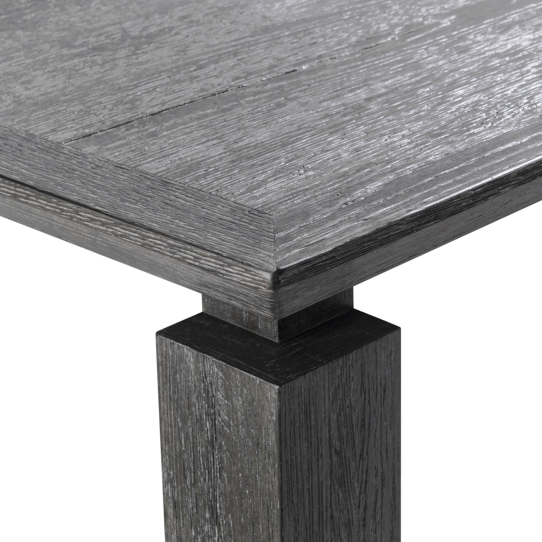 The Megan Dining Table showcases a modern, bold design with a sleek beveled wood top that seems to effortlessly float above striking structural legs. Its deep Sutton finish highlights the rich woodgrain, creating a stunning centerpiece that combines contemporary style with sophisticated craftsmanship. Perfect for making a statement in any dining space.