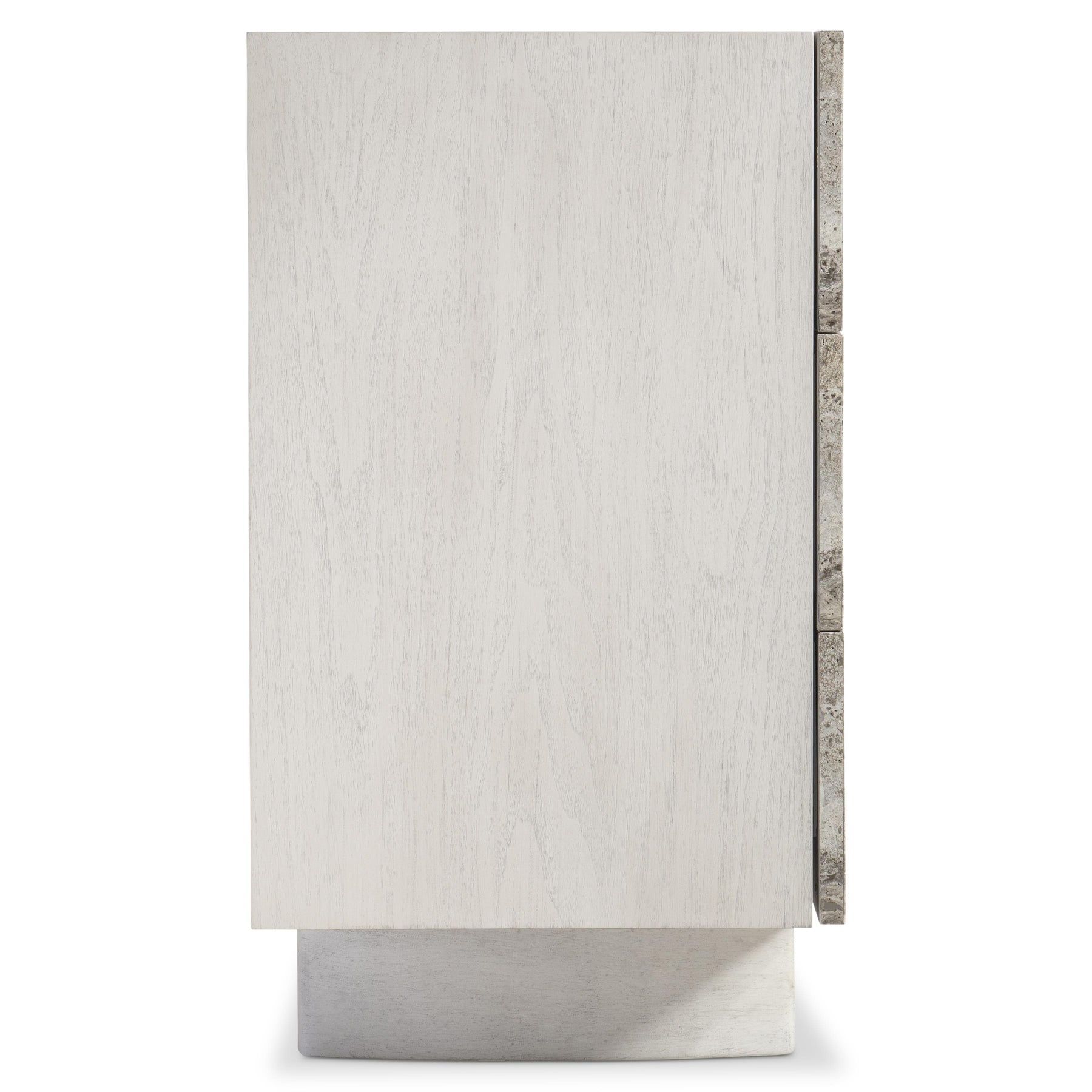 The Lune Buffet merges contemporary form with organic sensibility. Walnut with a Lutra finish frames the top and sides, while silver travertine fronts distinguish three drawers and two doors with luminous restraint. Cast resin legs finished in faux stone anchor the piece with sculptural presence. This thoughtfully proportioned storage solution speaks to those who appreciate refined materials and understated modernism in equal measure.